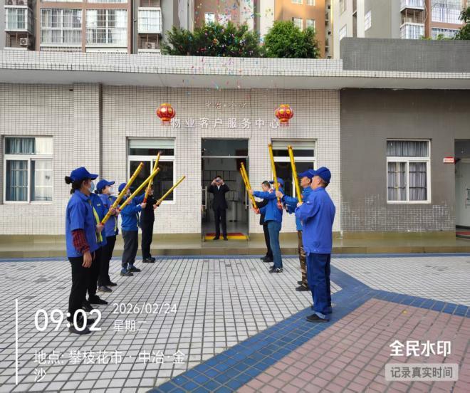 2026年2月24日上午九点,中冶金沙物业项目开工仪式在攀枝花市中冶金沙现场隆重举行。吉时一到,礼炮齐鸣、喜气盈门,热烈而庄重的氛围包裹着整个现场,也正式拉开了该物业项目启动运营、服务提质焕新的序幕。
