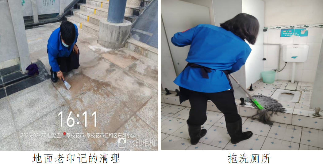 来源:东风小学物业服务中心 一滴水只有放进大海才永远不会干涸,一个团队只有凝心聚力,才能共筑温暖美好的家园。 自2026年2月1日东风小学保洁及宿管服务正式入场以来,为在开学前给老师、学生及家长呈现一个崭新、整洁的校园环境,东风小学项目部全体员工提前部署、主动作为,迅速投入到校园清洁与整理工作中。大家分工明确、协作默契,干劲十足:有的细致擦拭校园栏杆与门框,有的认真清扫墙角的蜘蛛网,有的全力冲洗校园地面,有的精心需要整理每一间宿舍的床铺,还有的专注清理地面老印记、拖洗厕所,不放过任何一个卫生死角,用心打磨每一处细节,只为以最整洁的面貌迎接孩子们归来。
