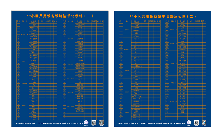 泸州市物业小区共用设施设备清单公示牌(完整版)