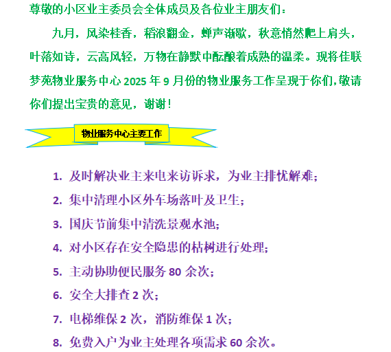 2025年9月物业服务工作报告