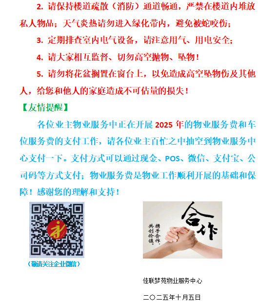 发布时间:2025-10-23  来源:佳联梦苑物业服务中心  阅读次数: 14