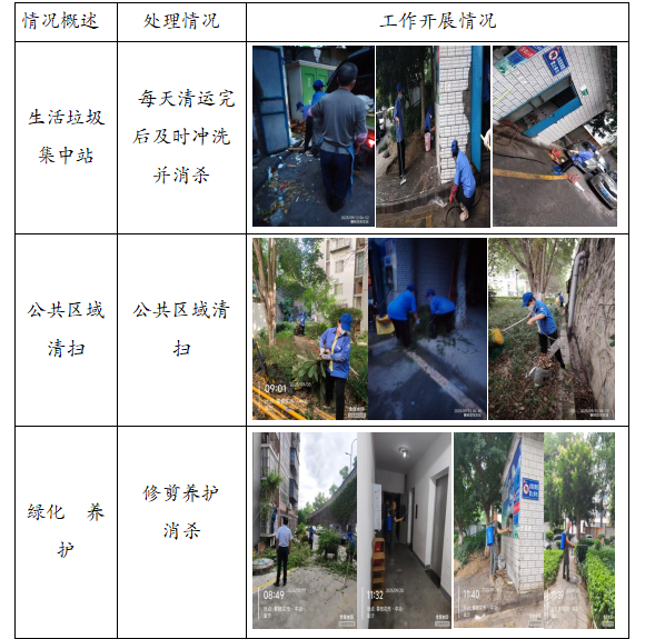 四、环境卫生的清洁、绿化养护 浇水、修剪、消杀、清理枯枝等的工作开展:全力做好防火安全及创文工作。