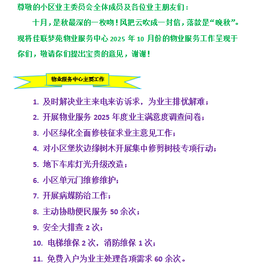 2025年10月物业服务工作报告