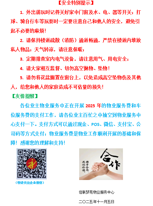 发布时间:2026-01-07 来源:佳联梦苑物业服务中心 阅读次数: 24