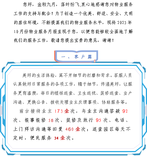 2025年10月物业服务工作报告