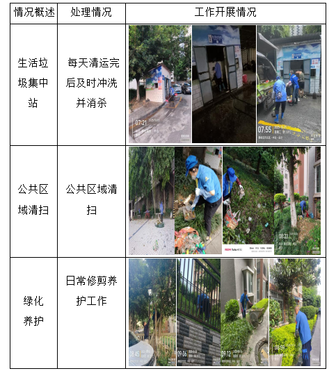 四、环境卫生的清洁、绿化养护 浇水、修剪、消杀、清理枯枝等的工作开展:全力做好防火安全及创文工作。