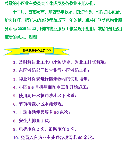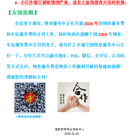 发布时间:2026-01-17 来源:佳联梦苑物业服务中心 阅读次数: 31