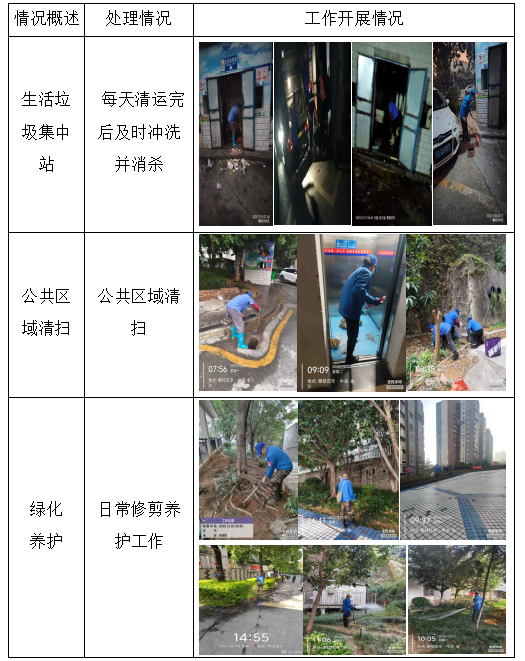 四、环境卫生的清洁、绿化养护 浇水、修剪、消杀、清理枯枝等的工作开展:全力做好防火安全及创文工作。
