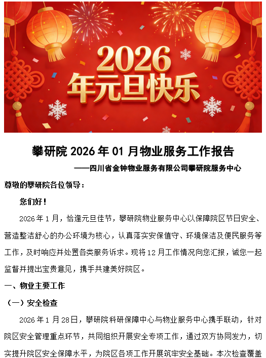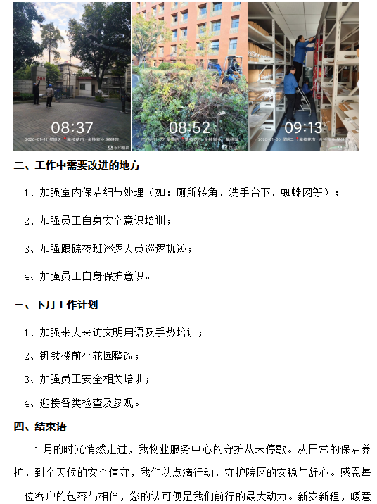 2026年1月物业服务工作报告