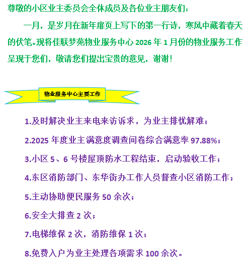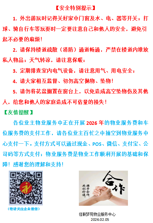 发布时间:2026-03-04 来源:佳联梦苑物业服务中心 阅读次数: 8