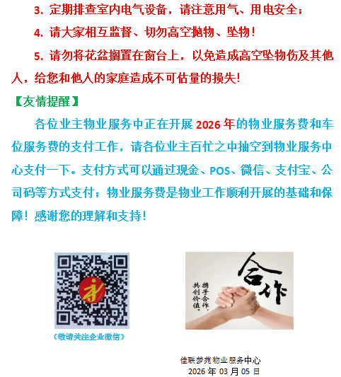 发布时间:2026-03-31 来源:佳联梦苑物业服务中心 阅读次数: 1